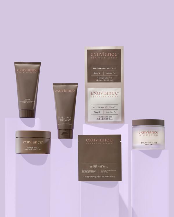 Exuviance förbättrar hudens kondition med hjälp av avancerad syrateknologi som AHA och PHA. Varje produkt är noggrant framtagen för att arbeta aktivt med huden och ge synliga, långvariga resultat. Hudvårdsrutinen blir inte bara något du gör – den blir något du ser, känner och ser fram emot varje dag.
