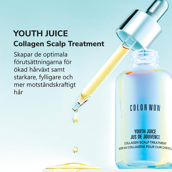 Color Wow Youth Juice Collagen Scalp Treatment är en revolutionerande behandling som har visat sig minska håravfall med upp till 90%, samtidigt som den stärker hårbotten och stimulerar hårväxt. Denna innovativa produkt är särskilt designad för att förbättra hårbottenhälsan genom att fokusera på kollagenet i hårbotten.