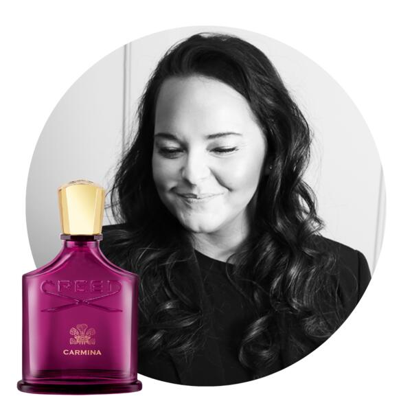 "Jag matchar med en ganska ny doft från Creed, Carmina. En blommig men träig doft, med inslag av Körsbär, Saffran, Pion och Mysk."