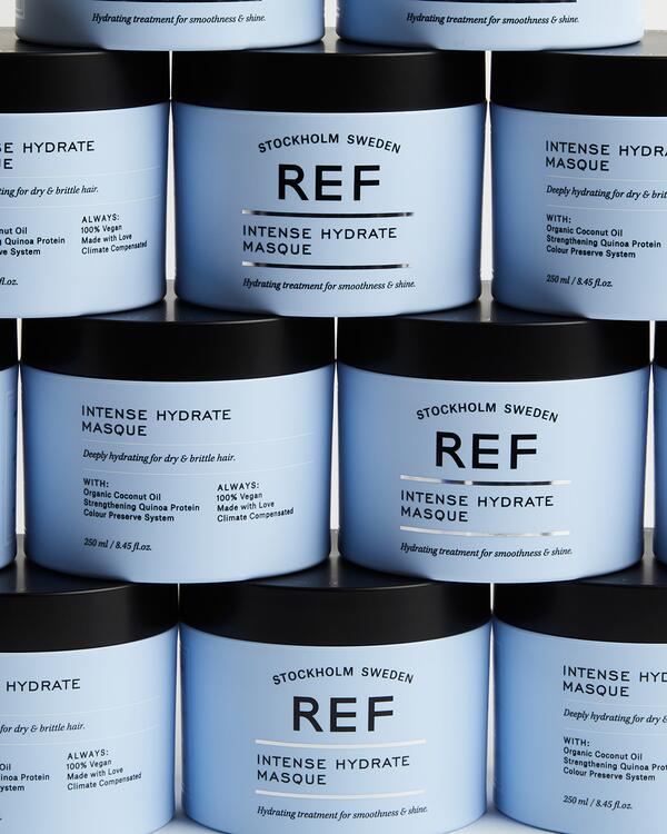 REF Stockholms serie Intense Hydrate är en vegansk och väldoftande kollektion framtagen med filosofin Nature + Science - där ekologiska oljor och botaniska extrakt möter avancerad teknologi för en fuktboostande hårvårdsupplevelse.