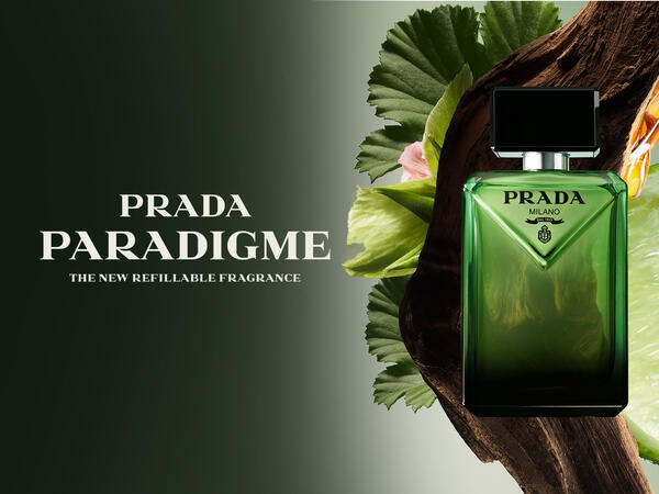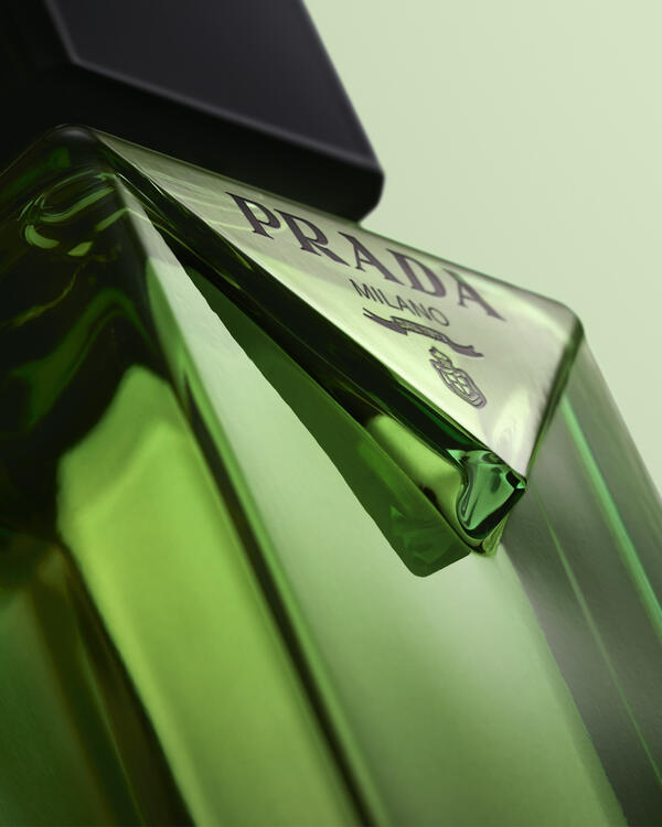 "När vi utvecklade Paradigme-flakongen hämtade vi inspiration från Prada-doftarkiven, och sedan letade vi efter sätt att återskapa designen genom ett modernt perspektiv. Den gröna färgen känns oväntad; den sneda kanten på den inverterade triangeln framstår som en taktil och överraskande detalj. På detta sätt är den karakteristisk Prada, eftersom den är både onekligen sofistikerad, men med en touch av excentricitet." Coralie Salem, kreativ direktör, Prada Beauty.
